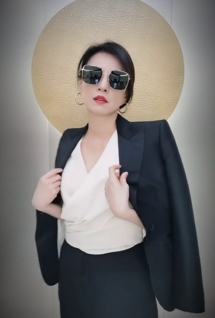 张庭先是戴着挡住了大半张脸的金框墨镜,身披黑色西装,一副女强人的气息铺面而来。而后张庭脱去披在肩头的西装,摘下墨镜,披散长发,露出只穿着露肩黑白包臀裙的内搭,大秀凹凸有致的好身材。只见她一双胳膊又白又嫩好似莲藕,腰身更是苗条纤细,笑起来时女人味十足。