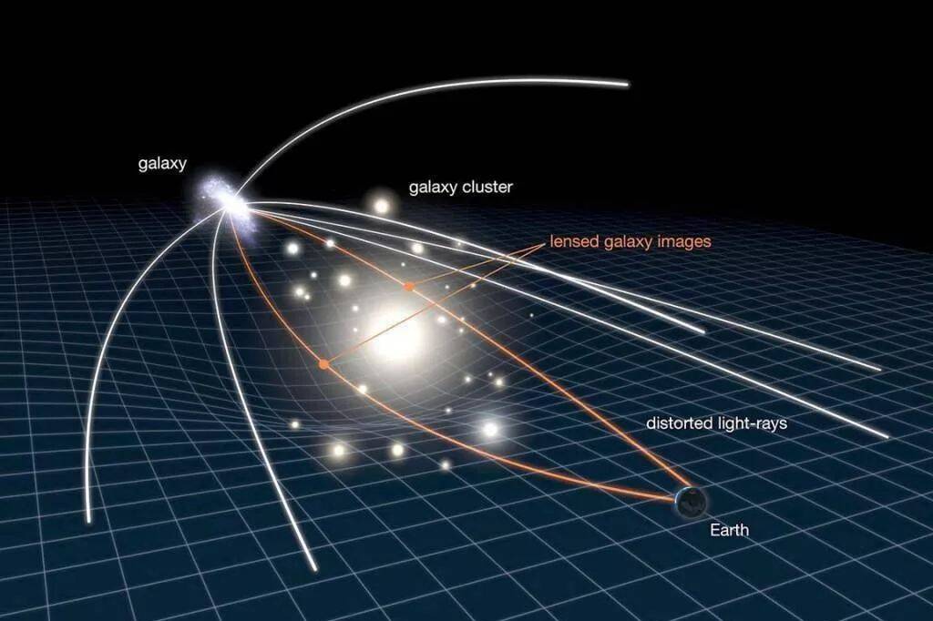 被星星们绕着转的恒星在时空中产生了一个“坑”,就像你把一个很重的物体放到了蹦床上,蹦床会因为重物的压力而下陷一样。爱因斯坦的广义相对论里是这么解释重力的。(刚过了广义相对论100周年纪念!)