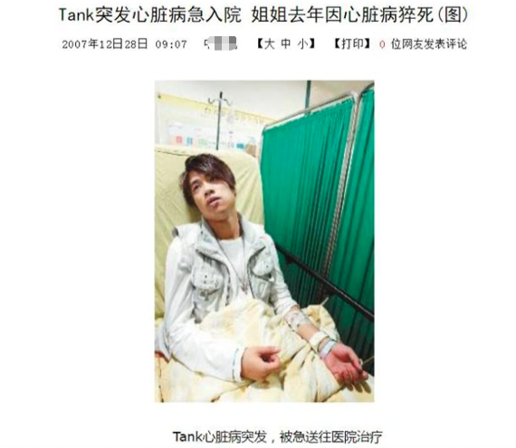 然而,正当事业高峰的时候,Tank却突然因为遗传性心脏病影响在工作中累倒,紧急送医后进行了心脏手术并植入心脏起搏器,休养了两年时间。