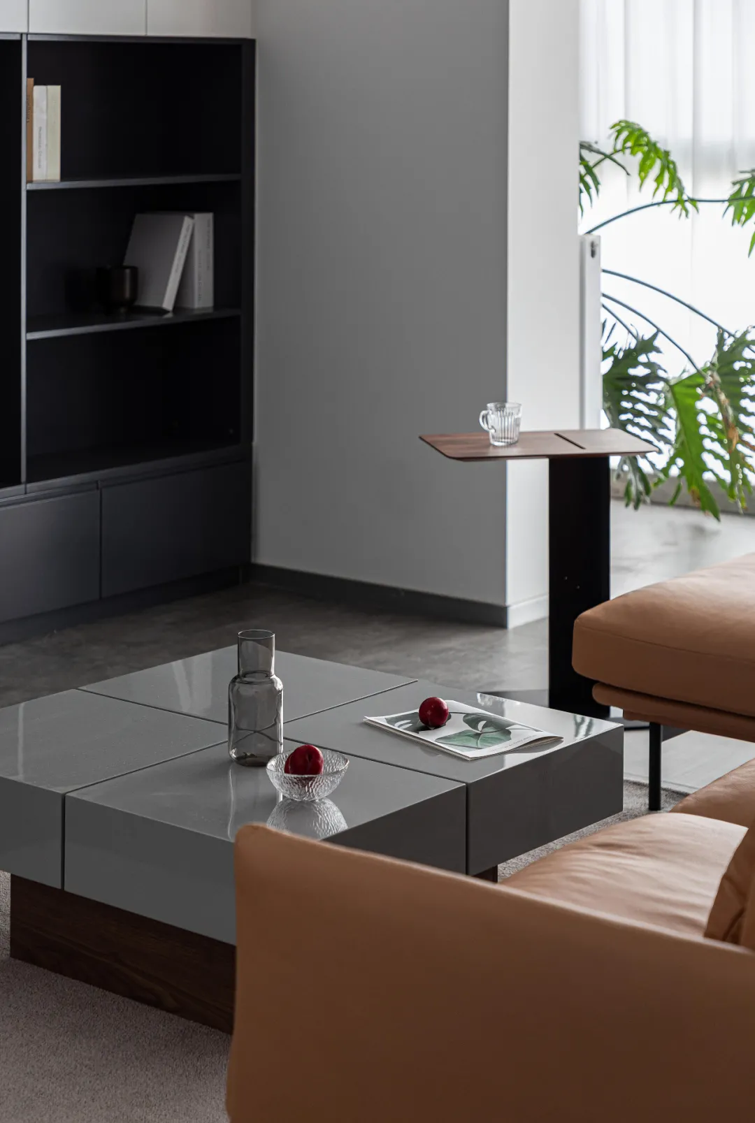 沙发、茶几和小边几均选择低矮的款式,视觉重心下沉,让空间更显开阔通透。