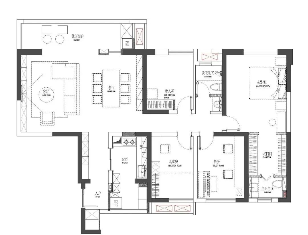 2、主卧衣帽间小,收纳不足 ,屋主衣服比较多,需要增大衣帽间;
