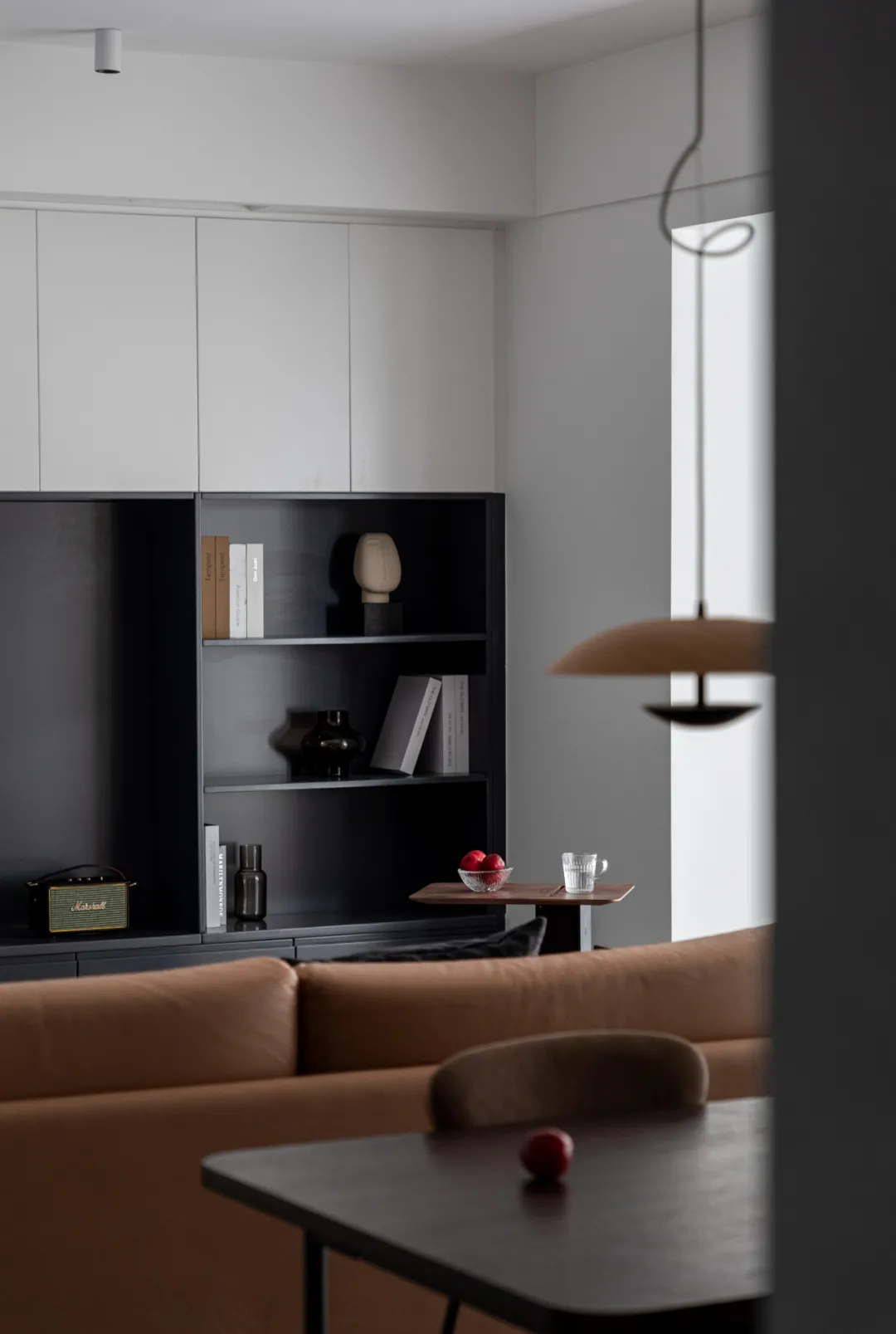 柜子局部做开放格形式处理,既可以展示书籍、装饰品,也不会让整个空间显得压抑。