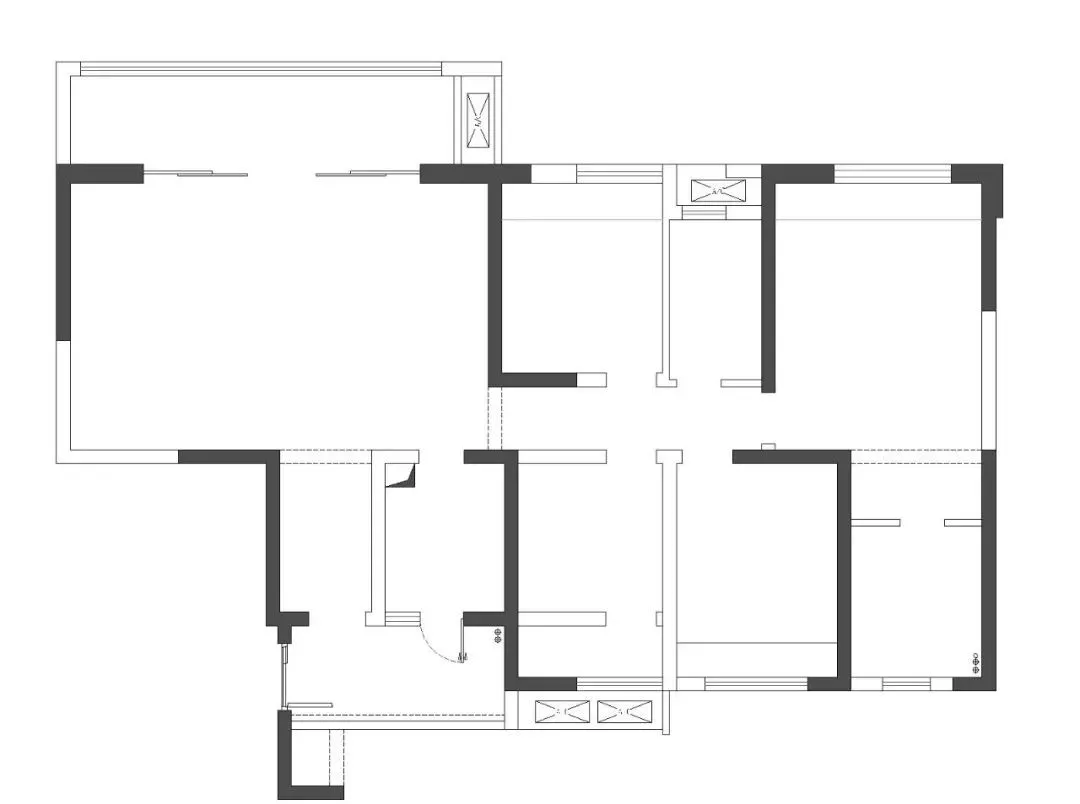 3、门厅和客餐厅之间的过道狭长,面积浪费。