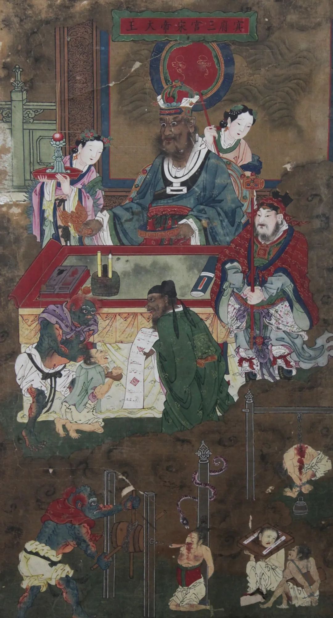 关于地狱、鬼魂之说,早在我国的夏商周三代之前,人们就相信人死后会化为鬼魂,并对之加以供奉和祭祀等活动。到了春秋战国时期,人们相信在人死后,会到另外一个世界,即一个和阳间一样存在着的阴间。那里也有户籍、等级、男女、夫妻、美丑,有享福的,也有受罪的;有可以超升的,也有万劫不复的·····道教有众多的阴间神灵,其中信仰非常普遍的就是十殿阎君。