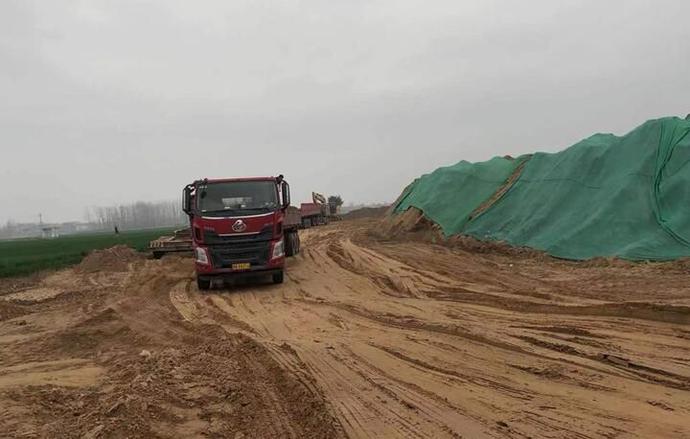 3月26日,在群众反映兰考县葡萄架乡南家坡一个取土的现场附近可以看到,大型机械设备正在装车,推土机正在把挖出的沙土堆成大堆以方便装车运走,现场规模可真算是不小。