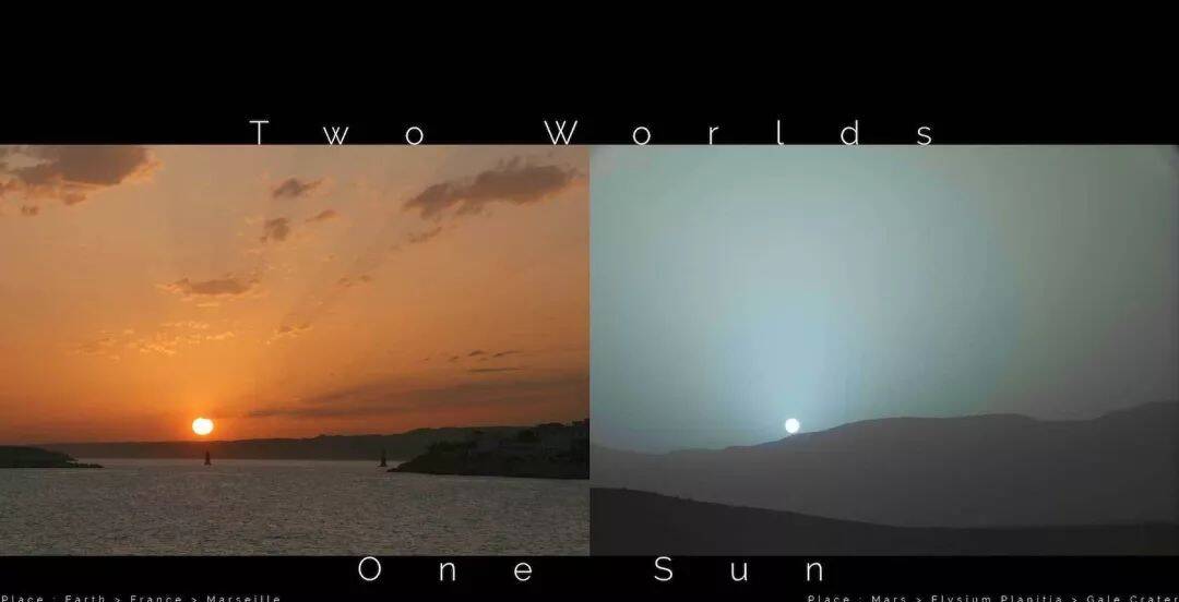 在地球上,来自太阳的蓝光被空气分子散射,并扩散在天空中,形成一个蓝色的树冠。火星的大气层不到地球的1%,因此,我们只能在日出和日落时分,从火星大气(和尘埃)的最大厚度中观察时,才能注意到蓝色。