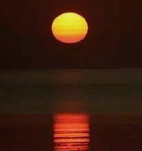 图解:苏必利尔湖的日出。大气折射(太阳光的弯曲)圆盘变成椭圆形。摄影:莱尔·安德森(Lyle Anderson)