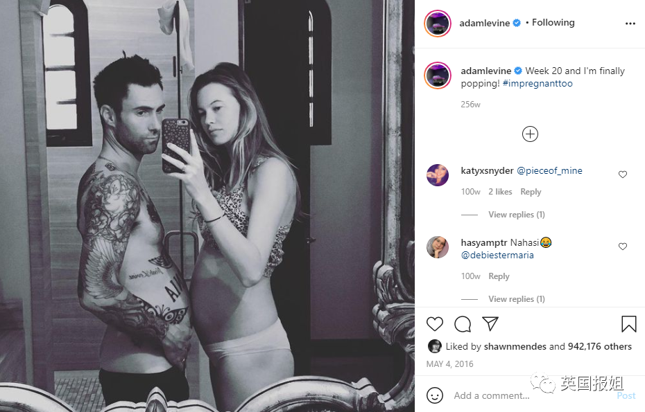 终于又看到维密超模小南瓜(behati prinsloo)和Maroon5主唱“骚当”亚当·莱文(adam levine)夫妇出街了!