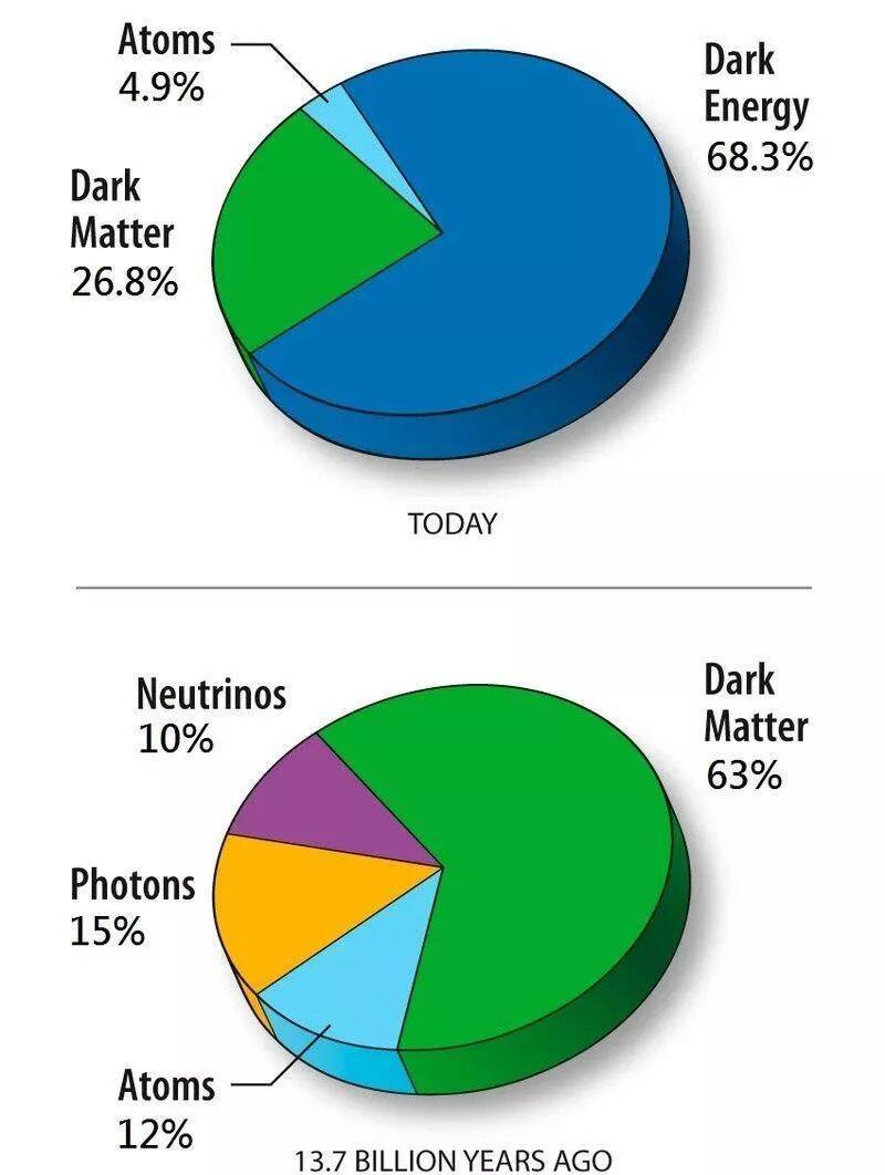 图解:今期与早期的宇宙质能分布饼图