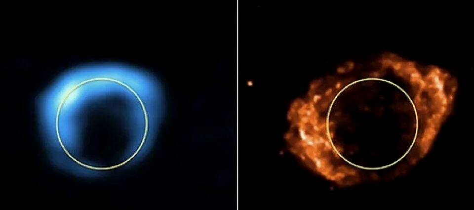 黑洞和中子星是II型超新星的残余,它们在无线电中发出如此强烈的辐射,以至于仙后座A是我们太阳系以外的从地球上看到的最强的射电源。尽管它在地球上是看不见的,但仙后座A离我们只有9000光年距离:就在我们银河系直径10万光年的范围内。然而在星系中心下方,一颗更新的超新星残骸在1984年被发现。