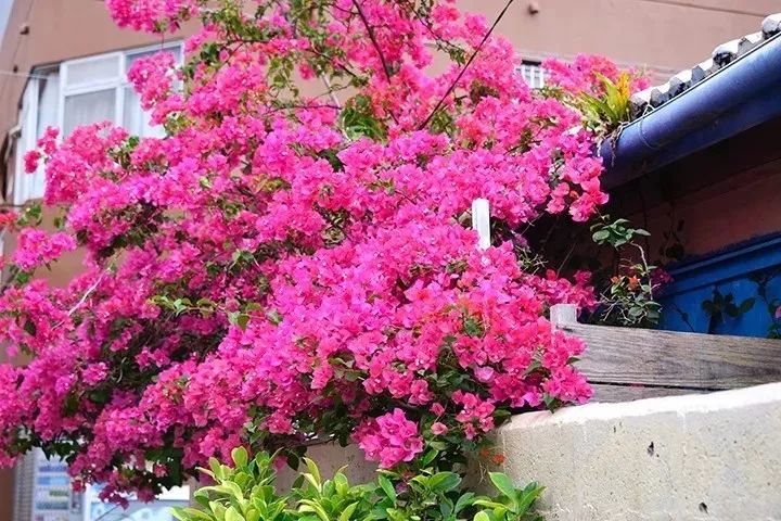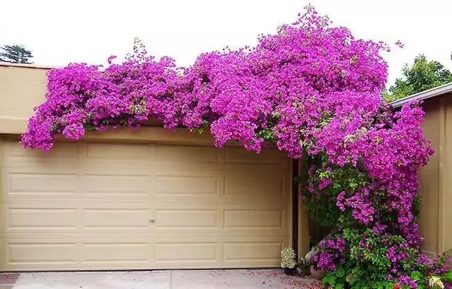 千万不要忽略三角梅的爬藤能力,不过三角梅现在大部分都是养成盆栽观赏,因为它是热带花卉,耐寒能力并不是太强,所以在北方大部分的地方只能养小盆栽,在偏南地区常年没有霜冻的地方,就可以将他养在院子里,布置成爬藤植物。
