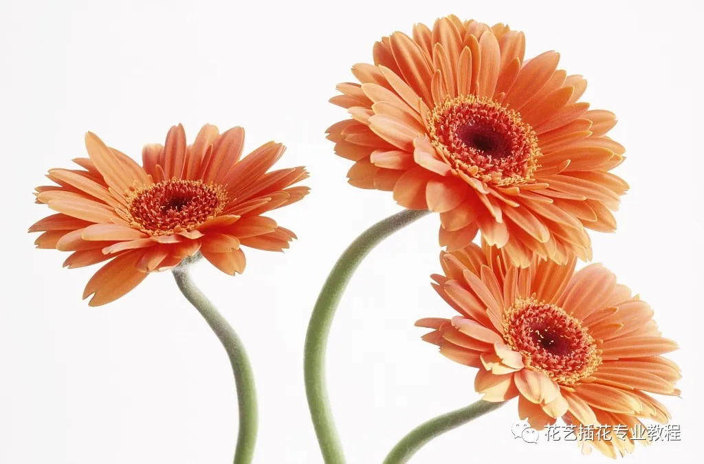 非洲菊的养护要勤换水剪根,不然在酷热的夏天,水非常容易臭,花期适中,也是花店日常必备的花材之一。