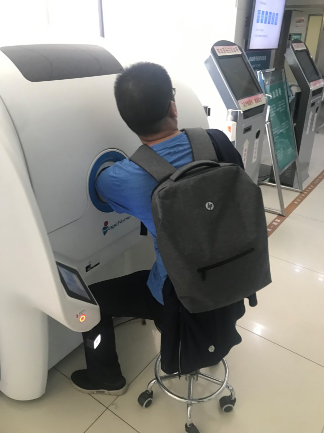 具体来说,迈纳士的智能采血机器人的操作流程是这样的:当医生给患者开完需要抽血化验的单子后,患者拿着病历卡来到采血窗口,将病历卡在机器身上扫描一下,机器就会知晓患者的详细信息,包括抽什么类型的血、抽几管等。当患者把胳膊放进机器中,机器会自动将胳膊固定住,然后开始自动扫描,扫描完成后会对患者情况进行判断:是否适合采血,哪个地方穿刺最安全、最可靠。评价结果是不适合对这个胳膊进行穿刺,那么机器就会将患者胳膊推出去,并进行语音提示,让患者去咨询护士;如果评价结果是可以进行穿刺,那么机器就开始对扎针位置进行定位,拿取一次性的针头,以设定的某种姿态、方式、角度扎到患者血管里,而针的另一端连接到盛放血液的试管中,并自主根据需要抽取的管数更换试管,直到抽血过程结束。拔针后,机器会自动给患者贴上一个止血片。在整个过程中,机器会自动对设备进行消毒。