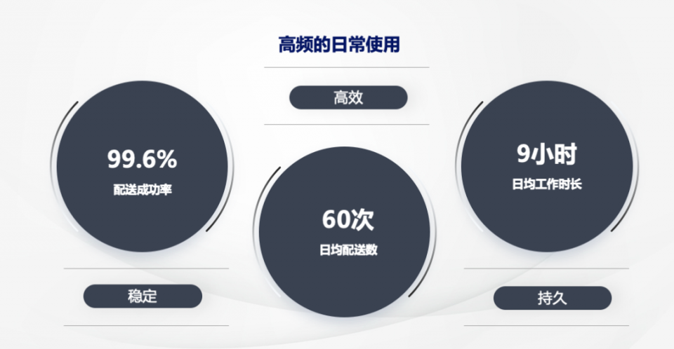 小笨智能配送机器人可提供长达10小时的连续工作续航,支持自动充电。同时机器人支持快速充电;机器人支持快充模式,半小时可以充80%电量,2小时内全部充满。经过实际工作模式测试:小笨智能配送机器人在1个月内累计工作1555次,日均执行任务达到79次,累计配送时长达到8小时。