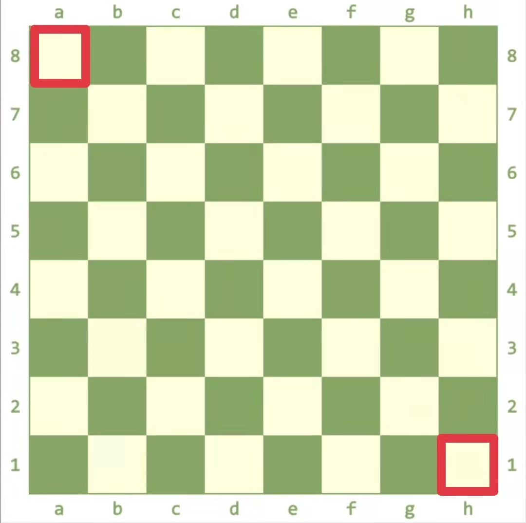 这是棋盘放置正确方向的重要参照,以便于双方棋子的正确摆放。很简单的记忆方法就是“右下角的格子是浅色的”。