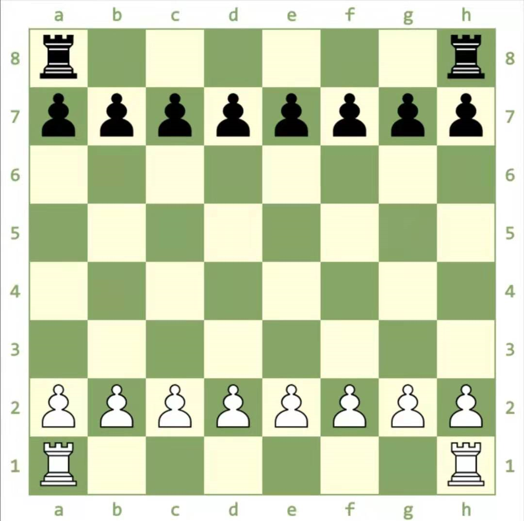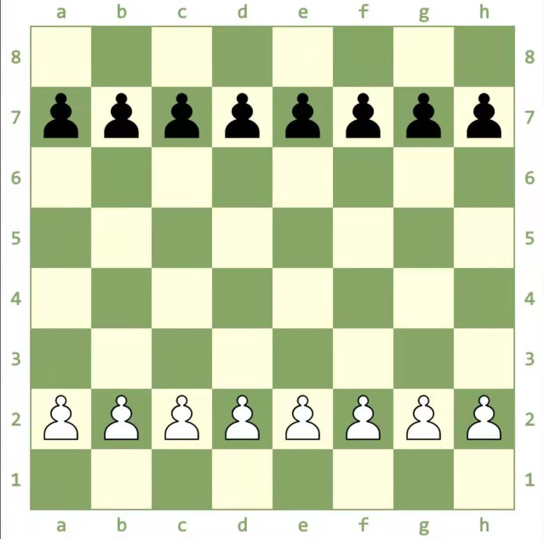 将你所有的兵放在其他棋子的前面,白色的小兵放在第2排,黑色的小兵放在第7排。