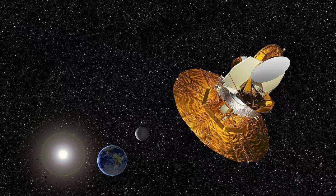图解:艺术家绘制的威尔金森微波各向异性探测器(WMAP)采集数据的景象