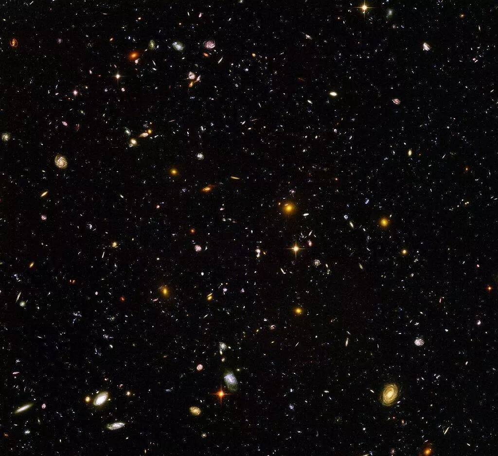 图解:哈勃超深空场描绘了远古时代的星系图景,根据大爆炸理论,它们处于一个更年轻、更致密且更炽热的宇宙。