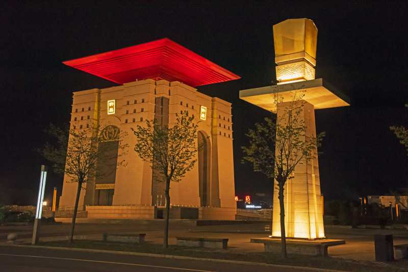 广场中心高大的“凯旋门”,叫许昌之门。四角,还有四个汉阙。显得古朴典雅。