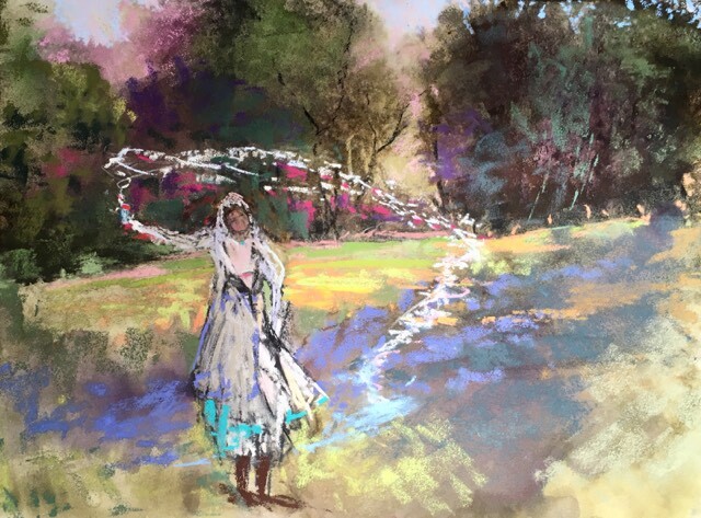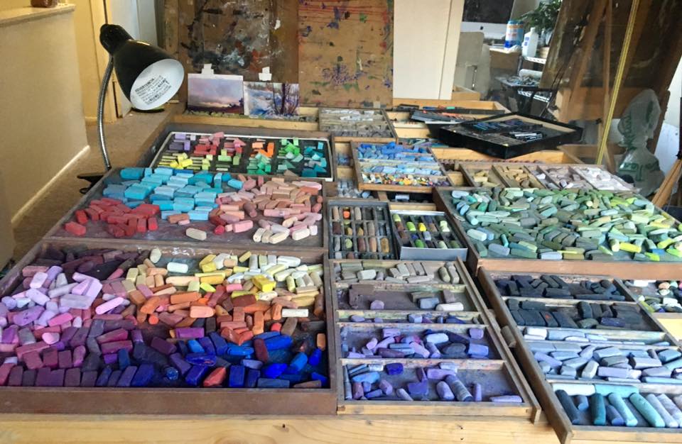 粉画是什么?顾名思义是一种有色彩的绘画,粉画的主要画材是由彩色粉末做成的粉画棒。但色粉画不是水粉画,而是用干的、特制的彩色粉笔绘制的画,画家把色粉画在有颗粒的纸或布上,直接在画面上调配色彩,利用色粉笔的覆盖及笔触的交叉变化而产生丰富的色调。色粉画既有油画的厚重又有水彩画的灵动之感,且作画便捷,效果独特,故深受西方画家们的推崇。