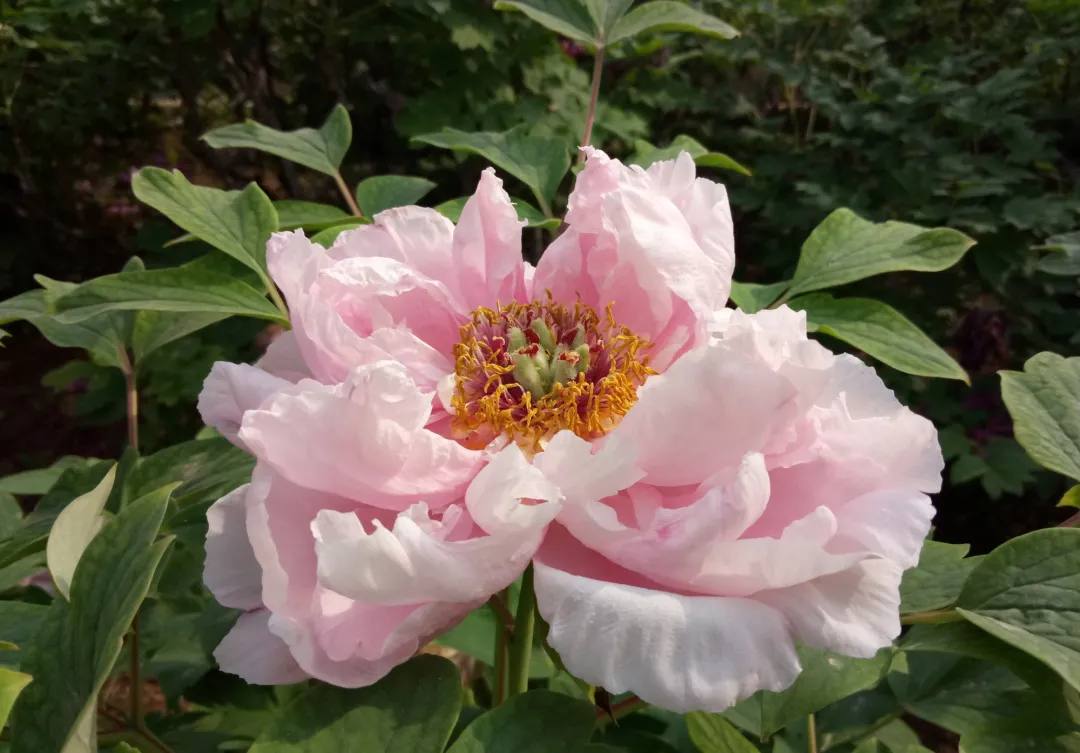 最喜欢的要数反其道而行之的“豆绿”牡丹和“蓝”牡丹。豆绿牡丹是绿色系中最典型的代表,属于中花期品种,花期比较长。盛开时呈现青绿色,由内往外层层变淡,风韵独特,有一种雅致的美。“蓝”牡丹又叫兰玉,实际上粉色里面透着蓝韵,给人一种奇妙的感觉。
