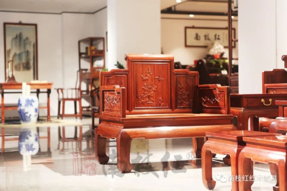 此款套装沙发繁简相胜,处处彰显匠心的严谨,富贵牡丹的雕花寓意吉祥,精简的结构型制更符合现代人的追求。