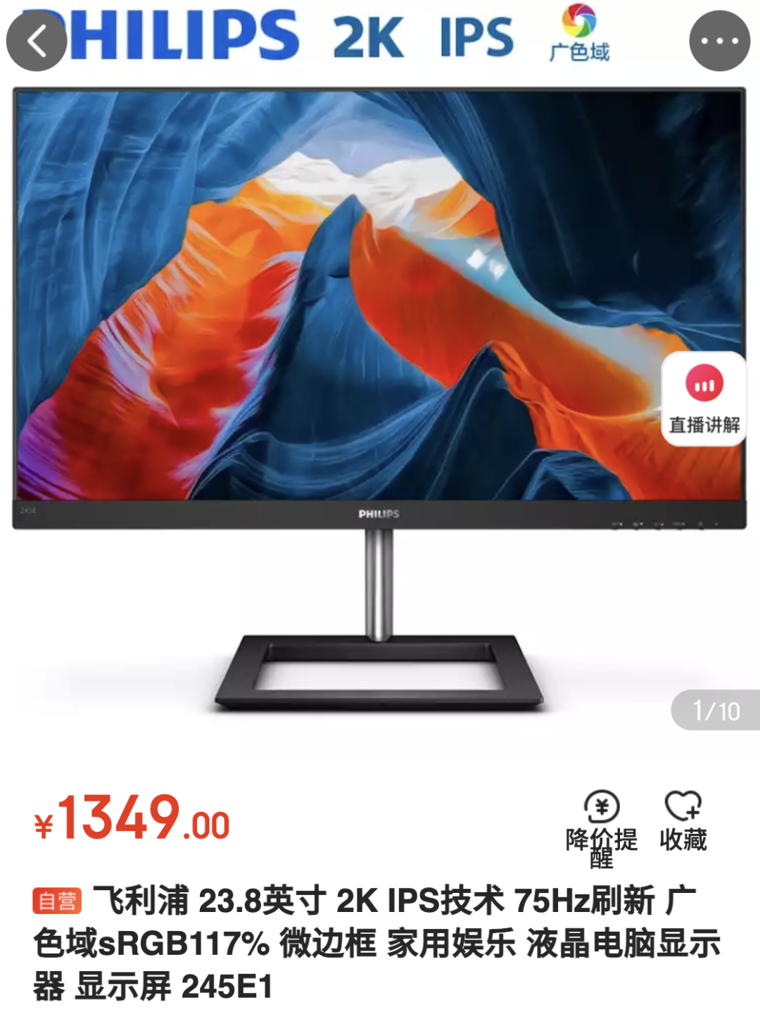 飞利浦 245E1 售价 1349 元,整体来说也算是比较有性价比的选择。