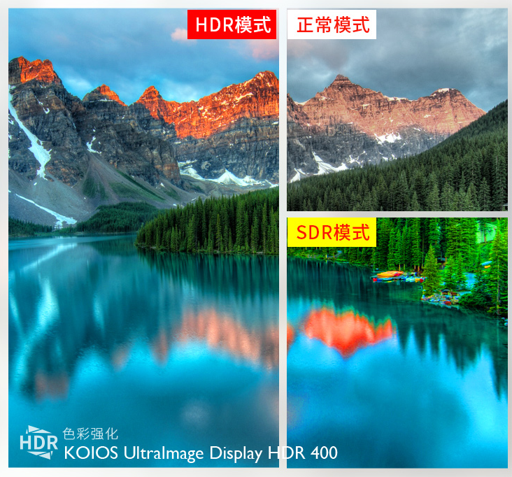 另外 KOIOS K2721UD 还支持 HDR 400,结合 100% sRGB 色域以及对 10bit 色彩的支持可以显示更多的画面细节。