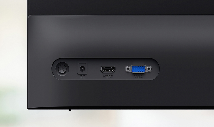 其背部提供了 HDMI、DP 以及 VGA 接口,分别可以对应电脑/游戏主机、电脑以及老设备,扩展性不错。