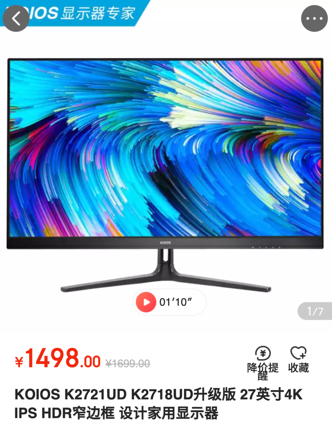 KOIOS K2721UD 售价 1498 元,如果你追求大屏与分辨率,同时想要兼顾主机(尤其是索尼PS系列),它应该你的好选择。