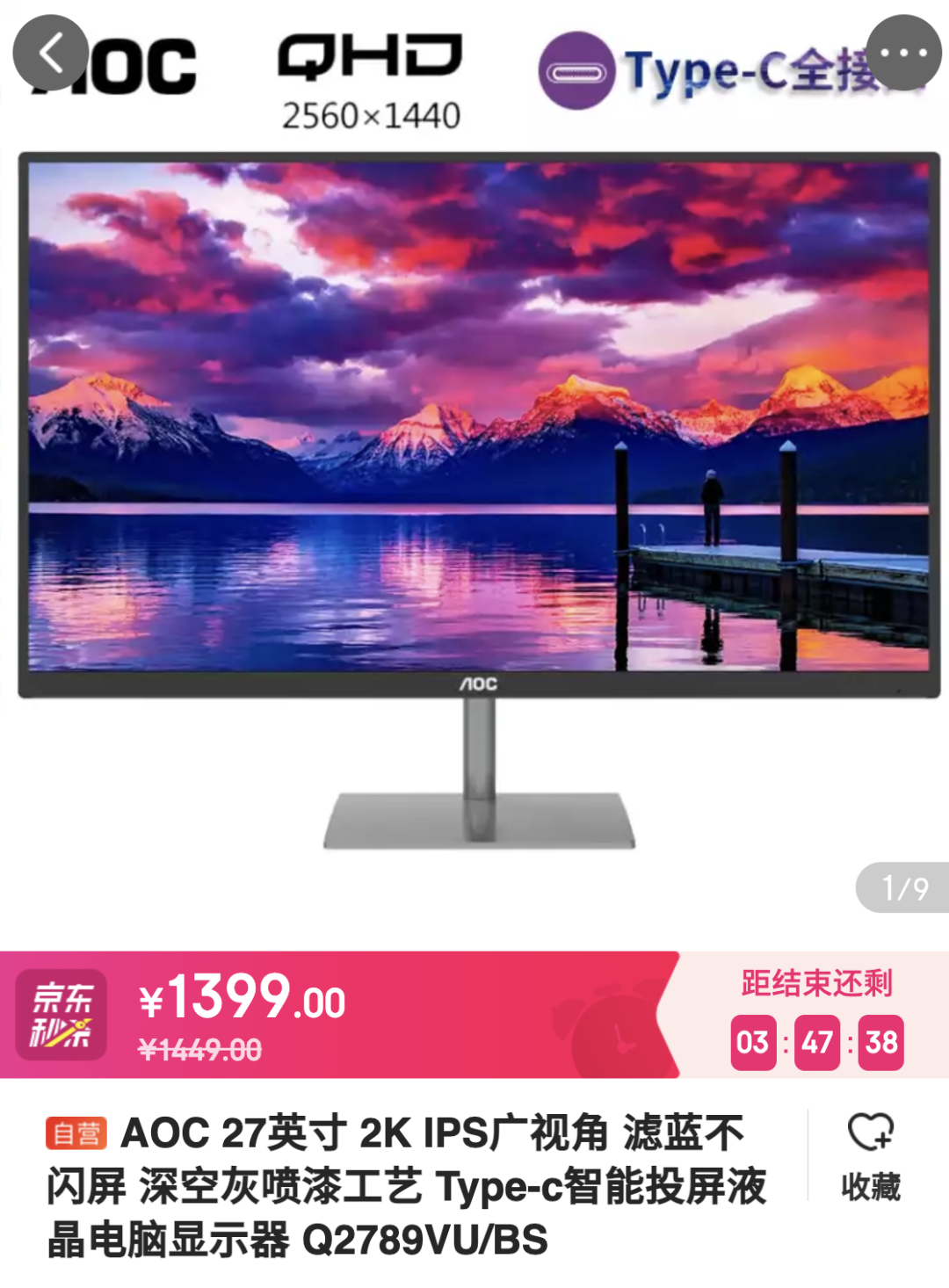 而且现在拥有该接口的显示器价格也来到了 1500 元以内,例如这一款 AOC Q2789VU/BS。
