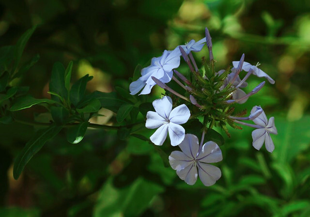蓝雪花是一种很耐盐碱的植物,它能通过叶子将体内多余的盐分排出来保证自己的健康生长。