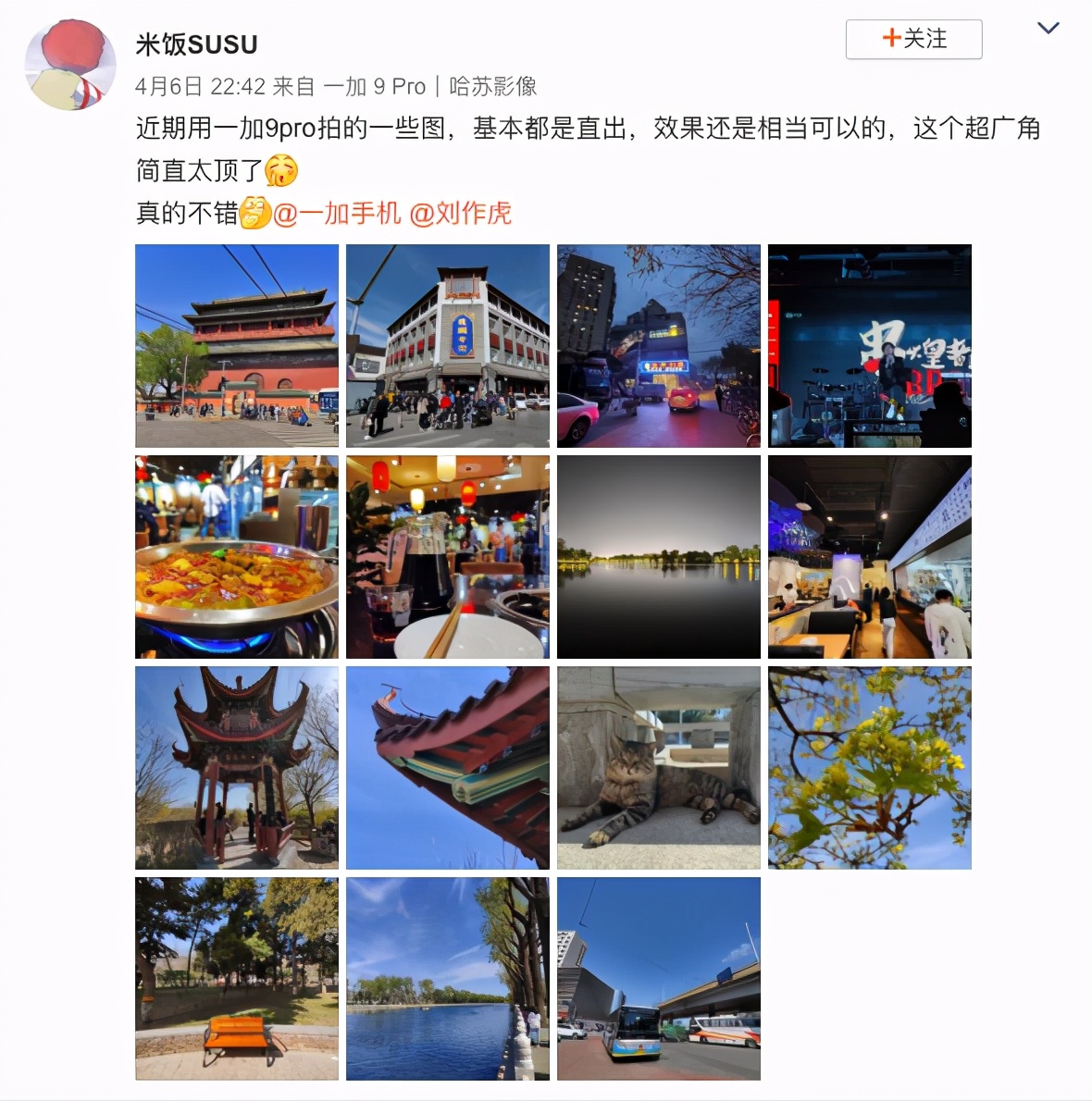 当然大家觉得好才是真的好,不少微博大V也晒出了使用一加9系列拍出的超广角样张,其中通过@米饭SUSU所拍摄样张中我们看出,碧蓝的天空,翠绿的树木,朱红色的建筑全都展现出来,画质十分清晰,而且使用超广角拍摄建筑最为合适不过了。对了,这个画面的边缘处倒是一点畸变情况都没有。