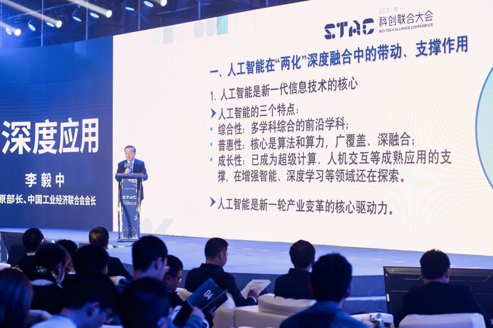 此次大会上,工业和信息化部原部长、中国工业经济联合会会长李毅中带来主旨演讲,他表示:人工智能作为新一代信息技术的核心,对推动“两化”深度融合具有重要的带动和支撑作用,也是新一轮产业变革的核心驱动力。