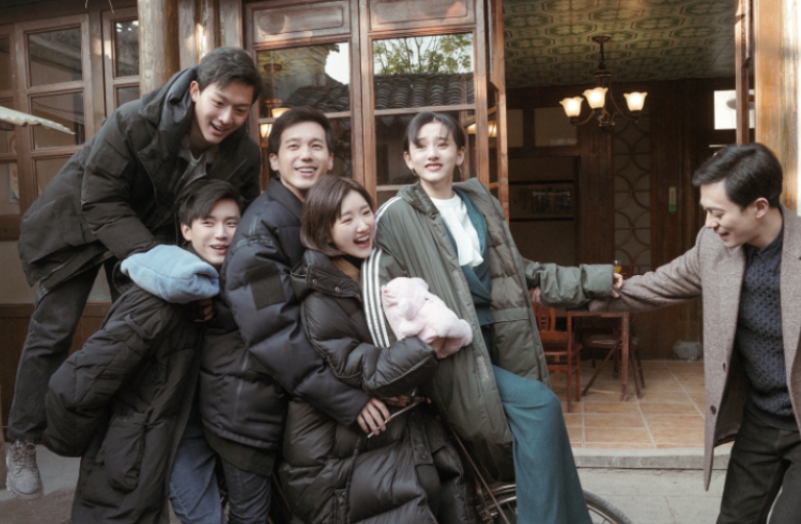 公开的剧照中,白宇、宋祖儿、毛晓彤都穿着一样的羽绒服,挤在一辆自行车上留影,说说笑笑,好嗨哦!