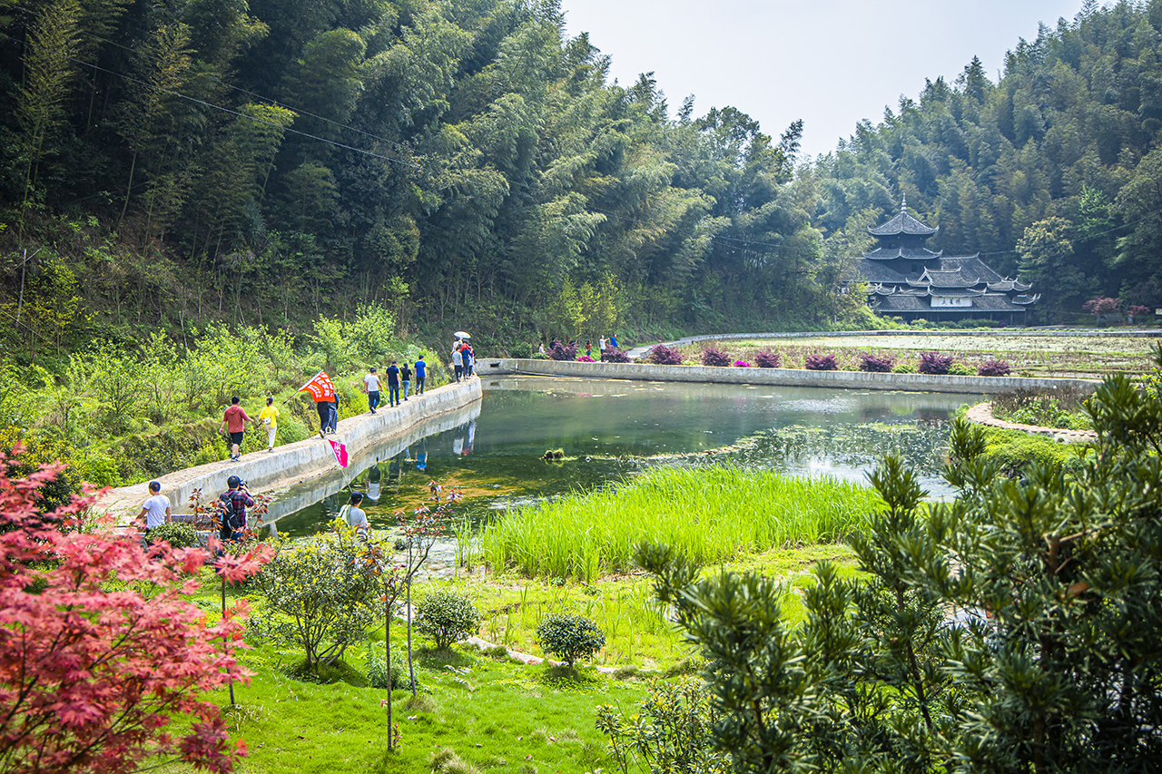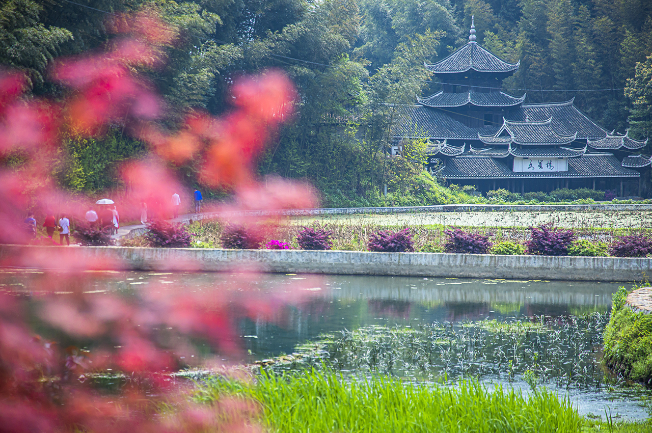这座楼阁建于1810年,与相邻的文星桥构成桥亭阁殿为一体的古建筑群。村里占字苗寨近年成为中国传统村落,列入全国少数民族特色村寨保护与发展名录。现在也经常会有很多人来这里旅游,走上花界徒步红军路,寻访长征足迹。