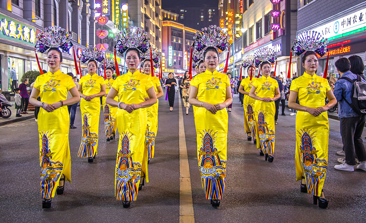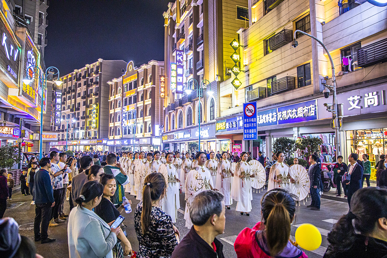华灯初上,霓虹闪烁,入夜的洪江古商城炫丽多姿,与白天的古商城不同,随着夜幕降每晚七点“又见小城故事”沉浸式夜游新体验开始了。你看,那成群结队的各色汉服旗袍佳人,游走于马路中间,阵仗十分宏大,明清穿越潮玩洪江,尽显女性的娇艳柔美与婀娜,时不时还有一段走秀或是城市快闪。