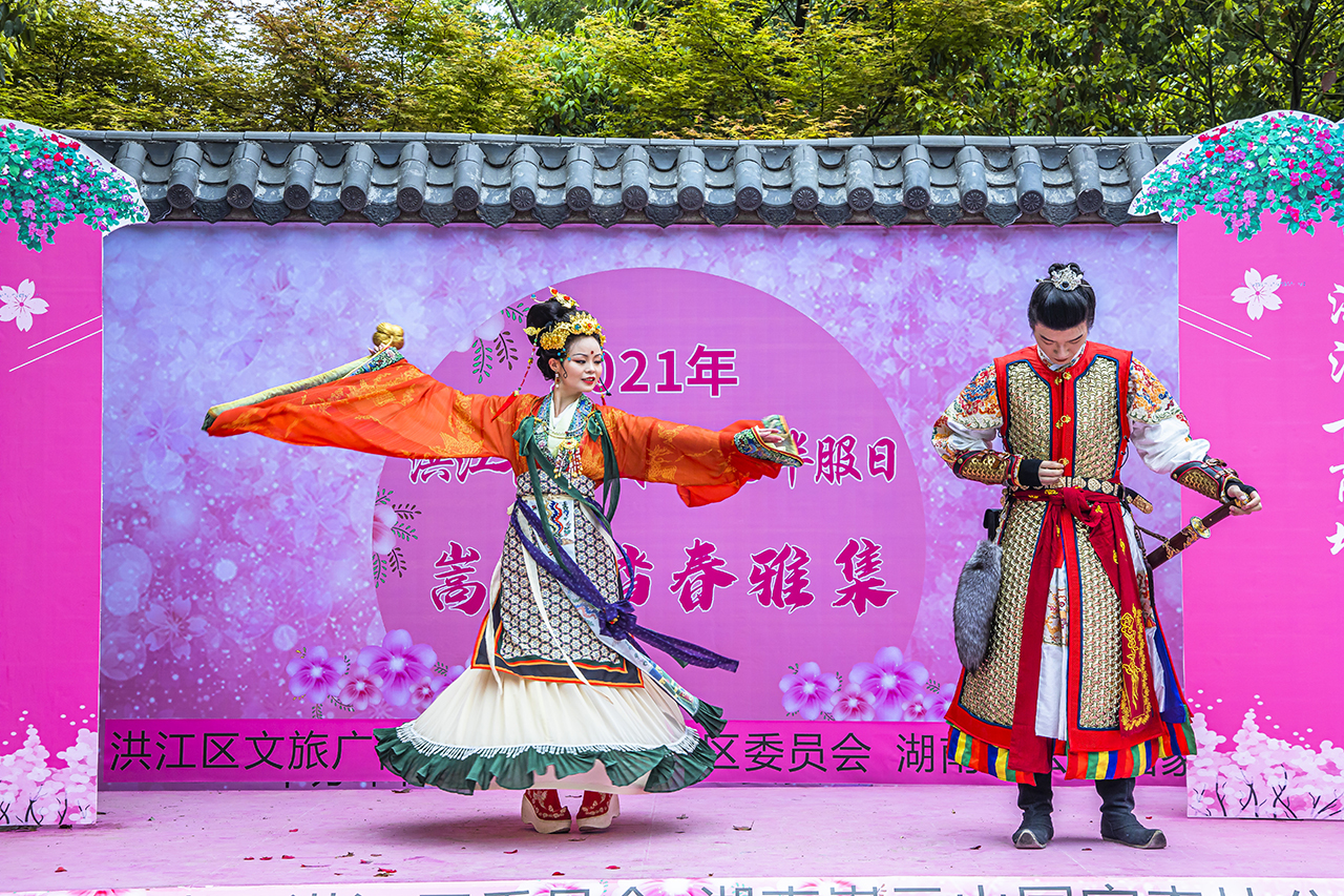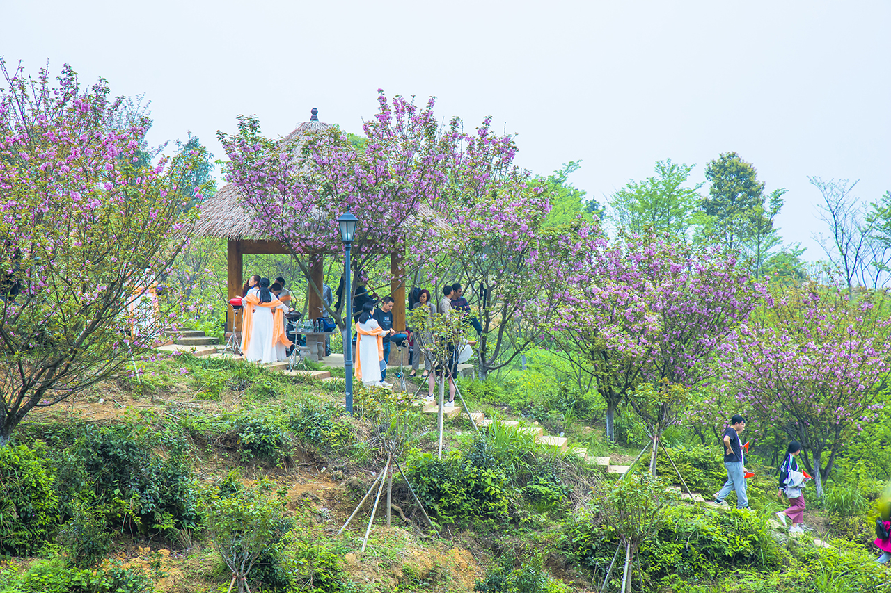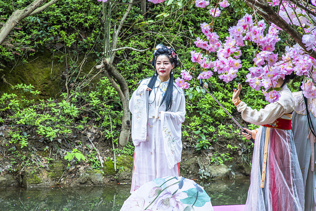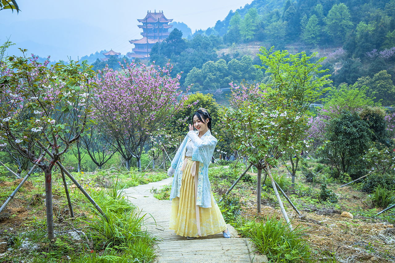 在洪江不仅有让人穿越的古商城,也有漫山遍野的烂漫樱花让人如痴如醉。很多游客会在此时身着汉服来此踏青游玩,处处可见华服之艳、古琴之韵。清明假期正值洪江赏樱的最佳时间,洪江区嵩云山上万株樱花正在盛开,正是大家外出锻炼身体,徒步嵩云山感受樱花遍山的烂漫美丽。