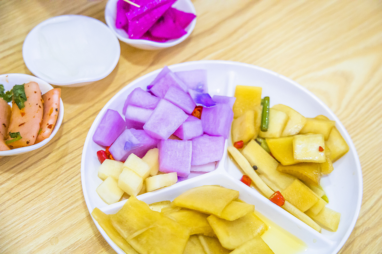 如今,芷江风雨桥成为芷江人的一个商贸买卖之地,桥中回廊两侧,开满了商铺。沿铺着青石板路的街上散步游玩,可见街道两边店铺林立,很多美食都可以在这里找到,同行的朋友喜欢吃萝卜,这不还购买了一大袋芷江酸萝卜带回家,真是让人回味无穷。