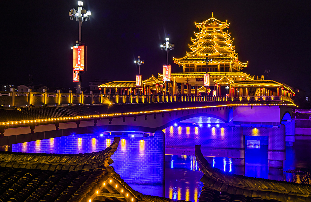 银河飞渡,风雨普济天下客,长虹横空,三楚龙津第一桥,说的就是这座位于湖南省芷江的龙津风雨桥,这是一座拥有四百多年的历史久远的桥梁。也是是全世界最长的伺乡风雨桥,在芷江夜游,龙津风雨桥是必看之景,也是必经之地。已经被收录进了世界吉尼斯纪录。