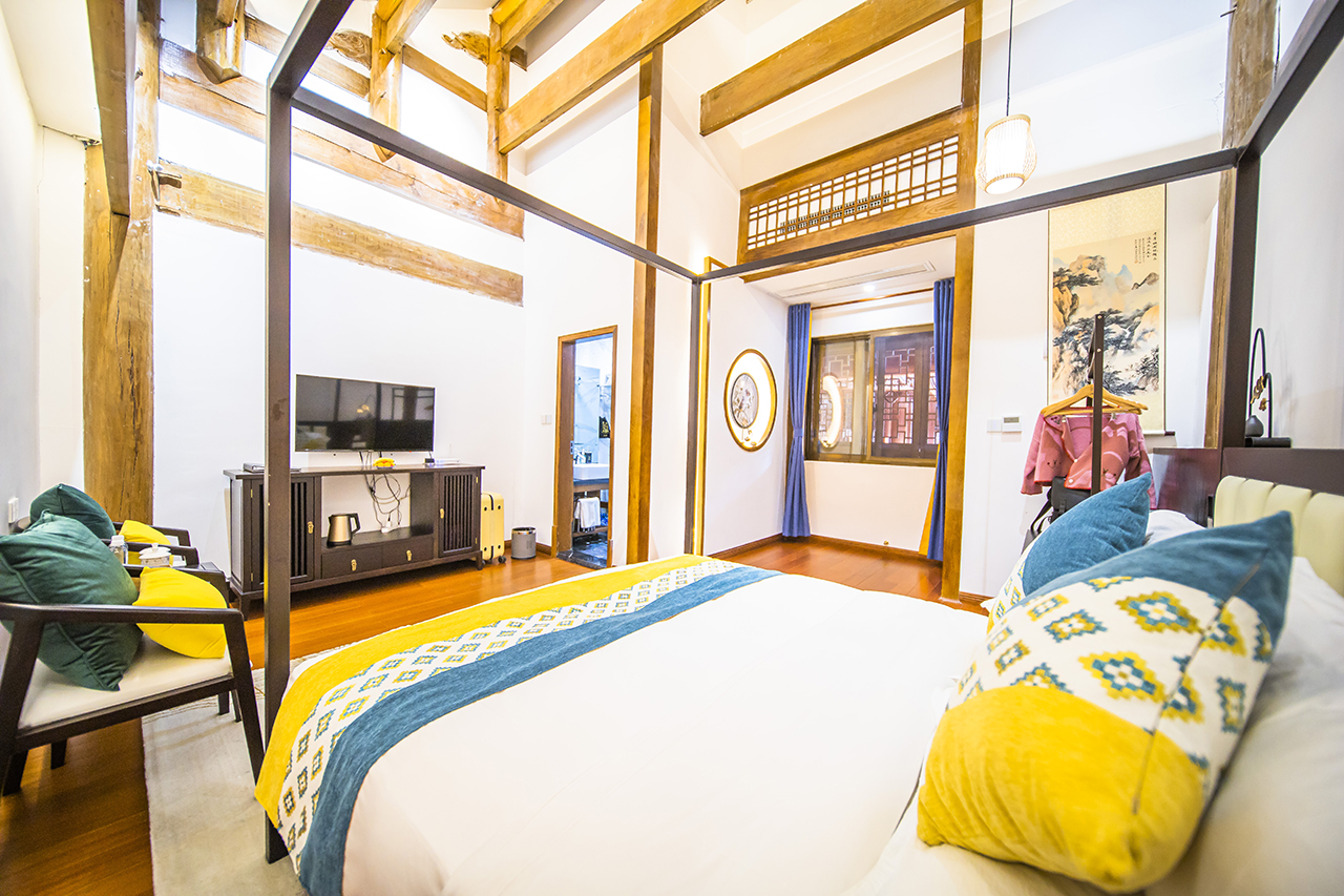 入住洪江古商城里的徽州会馆・曾府酒店,这是一个富含深厚文化底蕴气息的,精品徽派派建筑。整个酒店呈徽派建筑风格,以徽州文化为主题,以儒商之道为背景,将传统的徽州文脉和洪江风韵相融合,融古雅、简洁、富丽于一体,同时客房搭载有智能系统让民宿变得更舒适温馨。