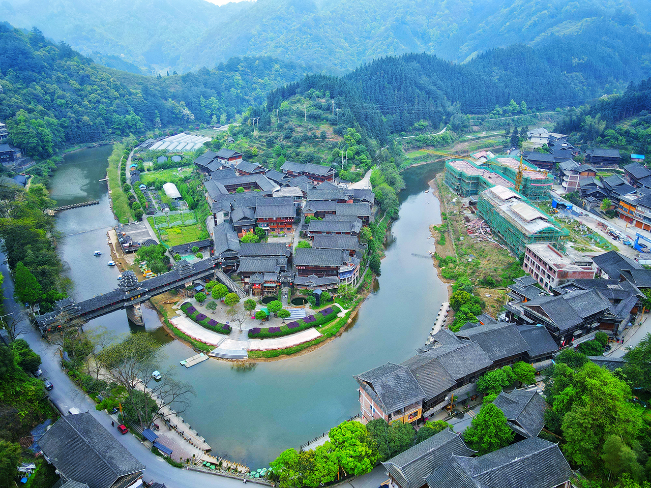 皇都村共有四个寨子组成,这些寨门都是像亭台。头寨、盘寨、尾寨、三个寨子连为一体,新寨则是处于一个半岛上由风雨桥(普修桥)和公路相通,与另三个寨子隔河相望。宣传片中取景地也就是这里拍摄哦!
