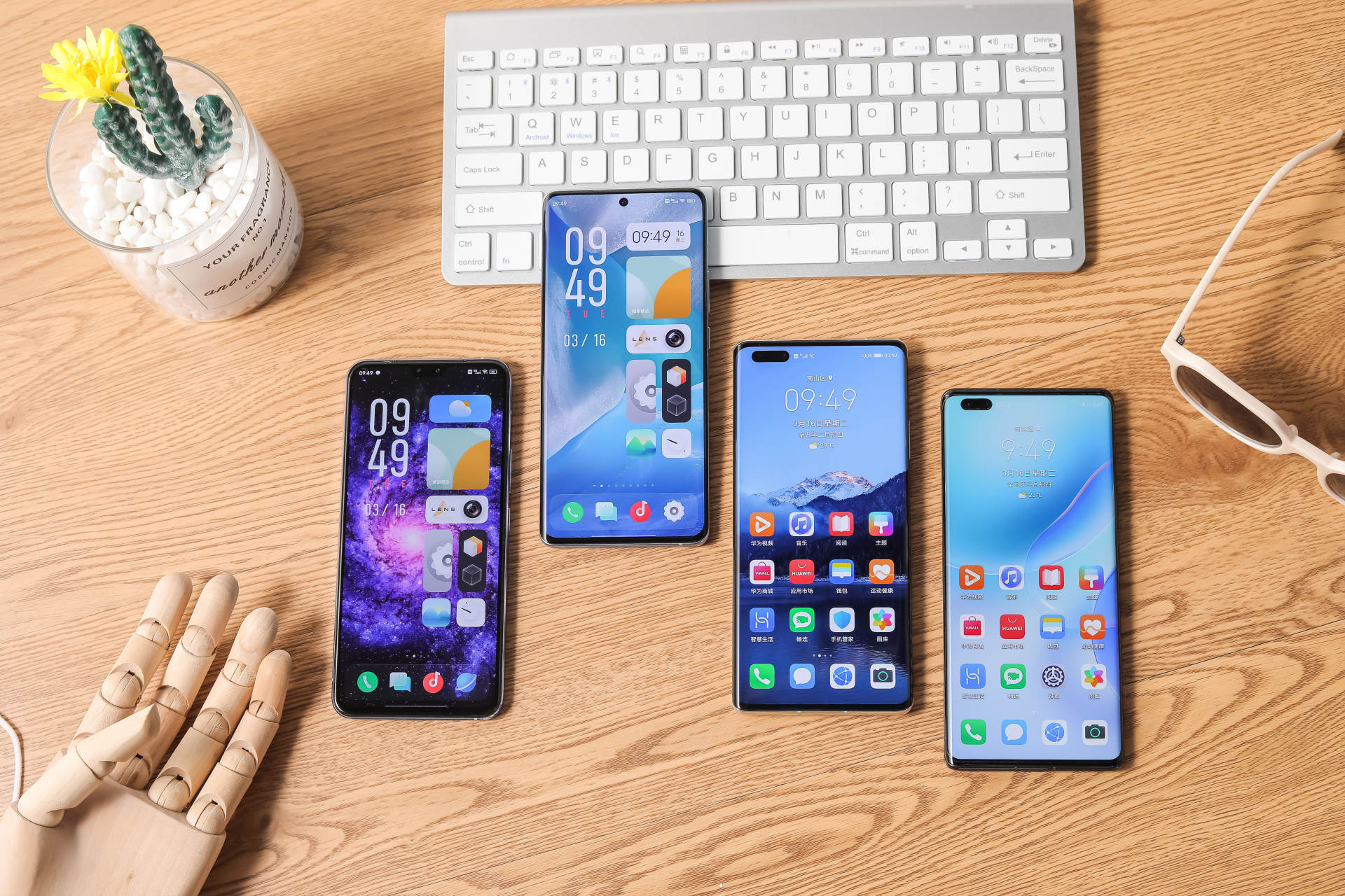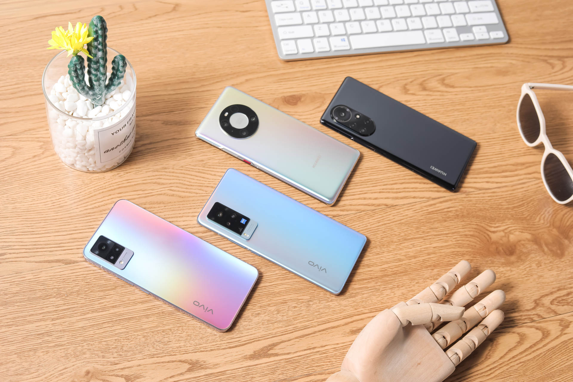 (从左至右:vivo S9、vivo X60 Pro、华为Mate 40 Pro、华为nova 8 Pro)