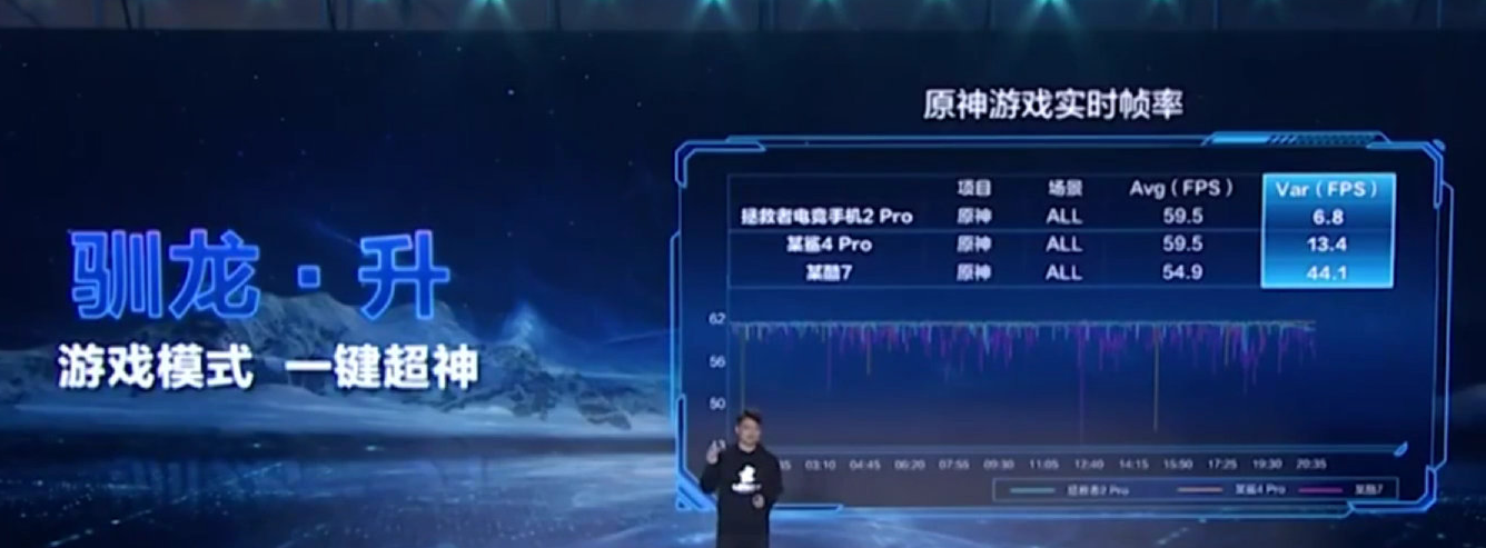 《原神》真的变成性能测试用游戏了,虽然平均帧率大家都很不错哦,但是联想表示拯救者电竞手机2 Pro的帧率抖动是最小的。