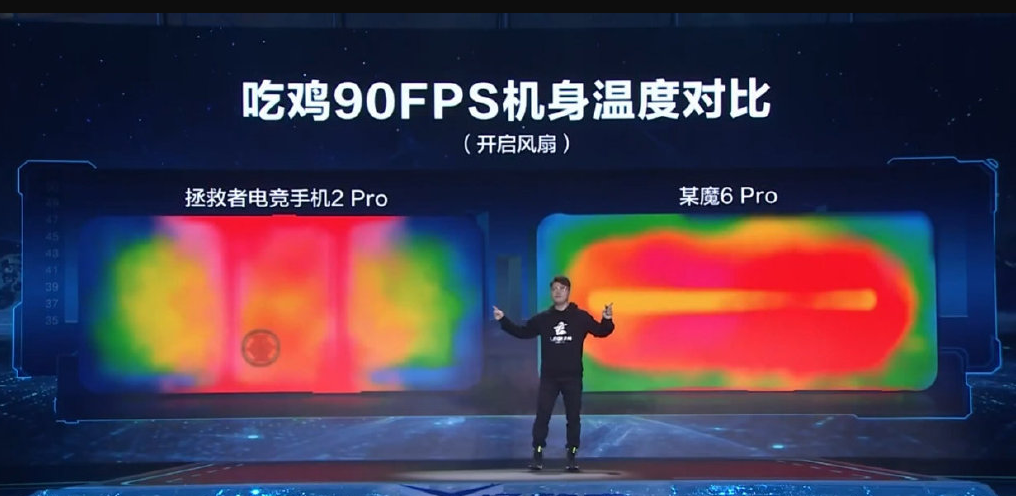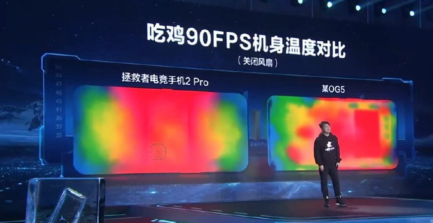 拯救者放出了拯救者电竞手机2 Pro在吃鸡90FPS模式下的机身温度图,并与几部友商的手机进行了对比: