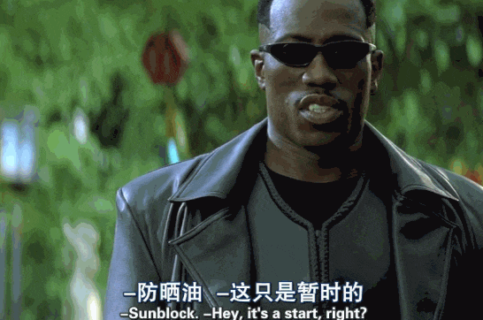 而在《刀锋战士》中,把一帮吸血鬼砍的人仰马翻的吸血鬼猎人,居然是一个黑人。并且,最令人咋舌的是,这个黑人,也是个吸血鬼。