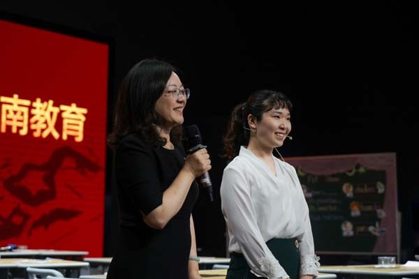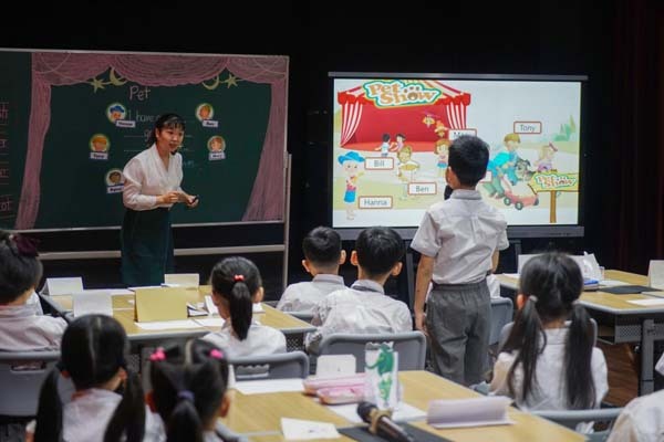 在”You say I say“的游戏中,北京大学附属小学张微老师与北京大学附属小学海口学校三(1)班学生们带来了英语课《PET SHOW》。