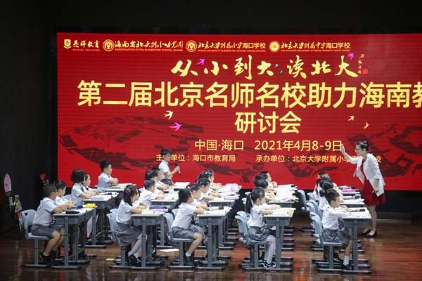 4月8日,由海口市教育局主办,北京大学附属小学海口学校承办的“从小到大读北大”——第二届北京名师名校助力海南教育研讨会在北京大学附属小学海口学校开幕。