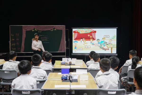 “专心地学习,痛快地游玩”是冰心老人对孩子的希望,也是描绘孩子校园生活的蓝图,在小学阶段“学”和“玩”是最核心的两大主题,北京大学附属小学海口学校的英语课程一直讲求“卓越课堂,玩出精彩”。英语教学是在语境之下的教学活动,需要创设环境,让学生在轻松的课堂体验中习得语言。