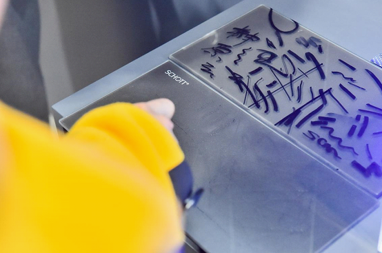 与普通玻璃相比,SCHOTT® CleanPlus 产品的疏油效果十分明显,油性笔迹基本无法附着